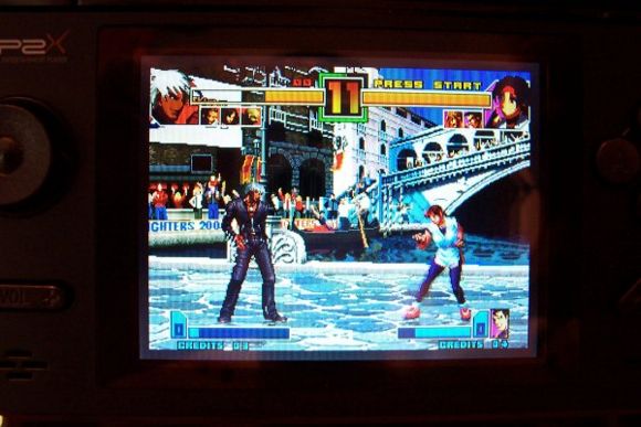 La GP2X est légère, agréable en main et surprend par son stick analogique à la place d’une croix directionnelle. Un choix étonnant, sauf pour ceux qui ont connu la Neo Geo Pocket. Ces derniers savent que l’on peut avoir un stick correct pour les platformers et excellent pour les jeux de baston, ce qui est précisement le cas sur cette machine.